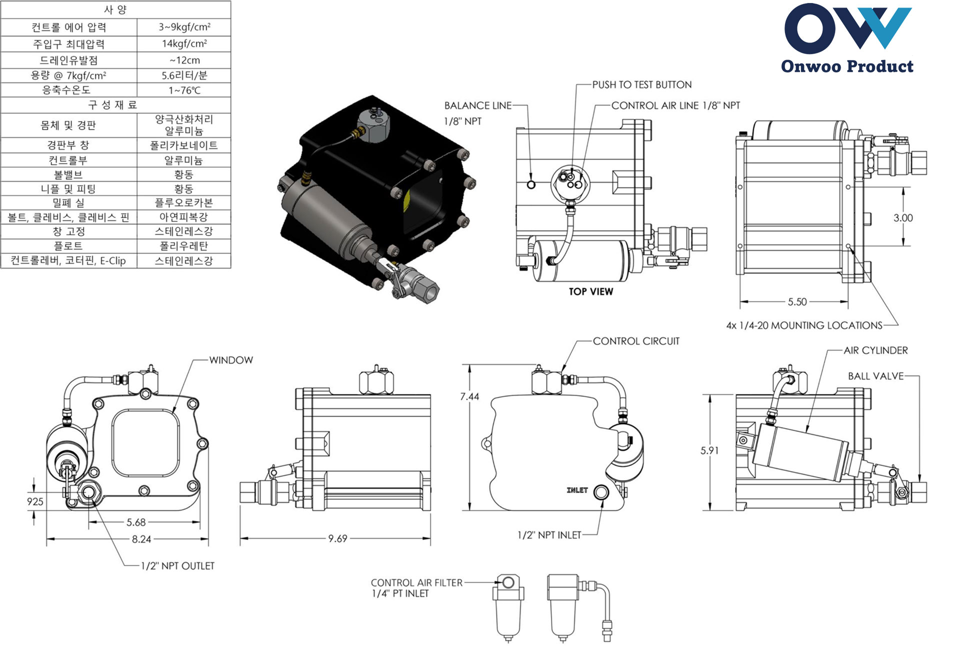 전원이나 전자식 센서 없이 순수 공압식으로 작동합니다.