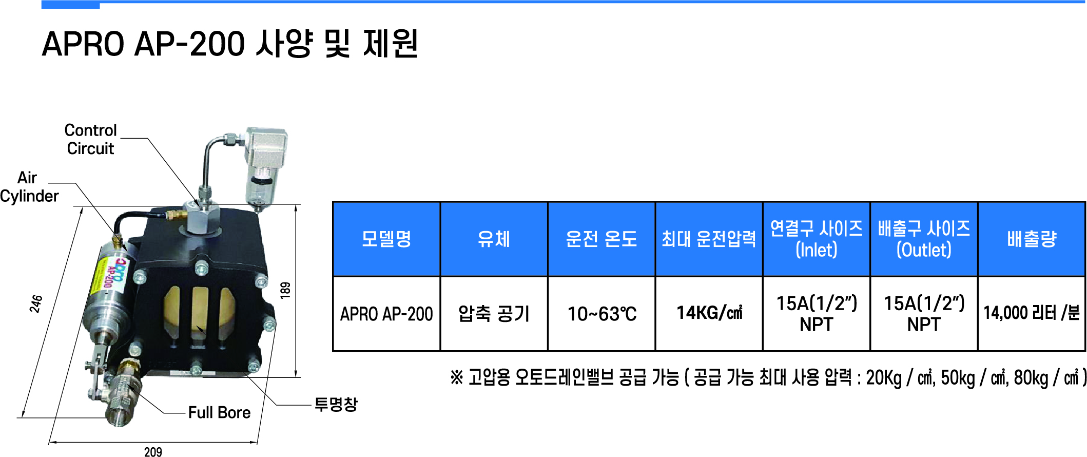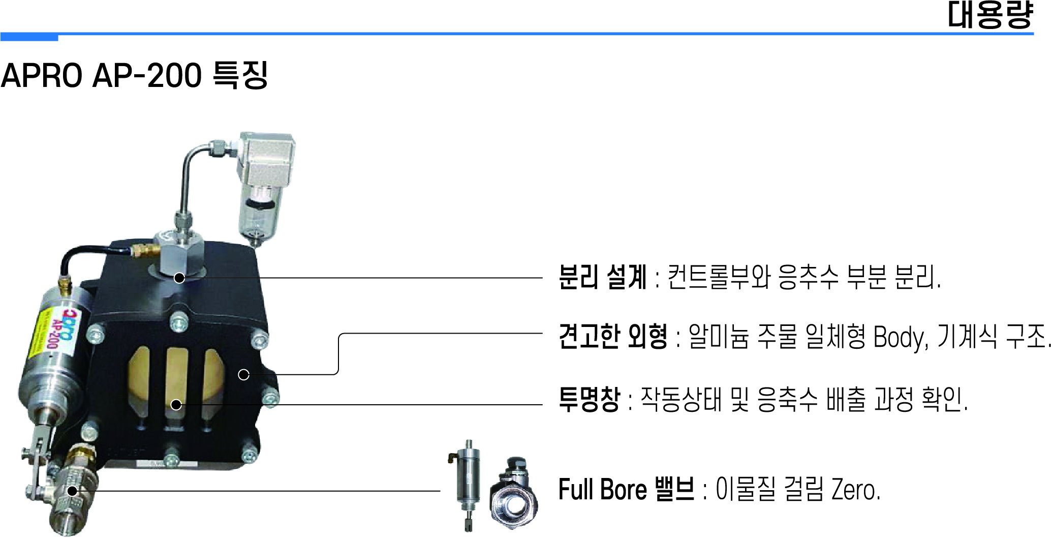 AP-200은 200~2000HP급 설비까지 커버할 수 있는 대용량 드레인 솔루션입니다.