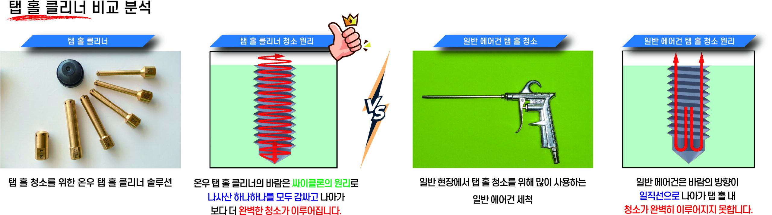 단순한 에어블로우와 달리, 탭 홀 클리너는