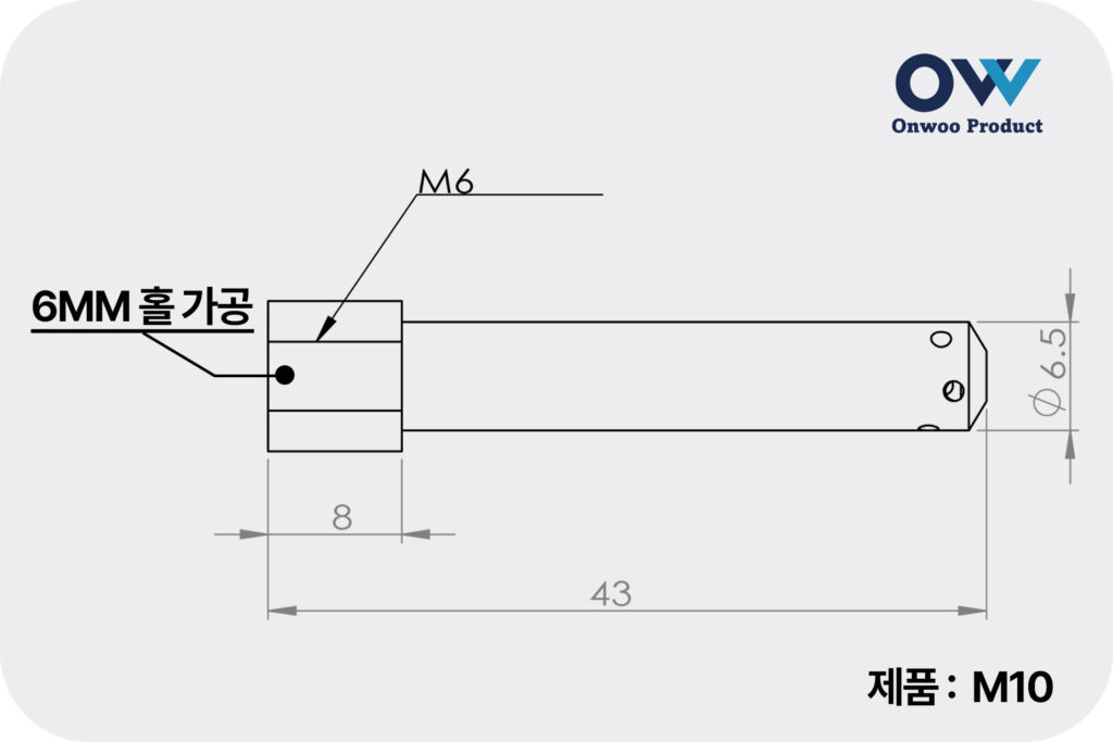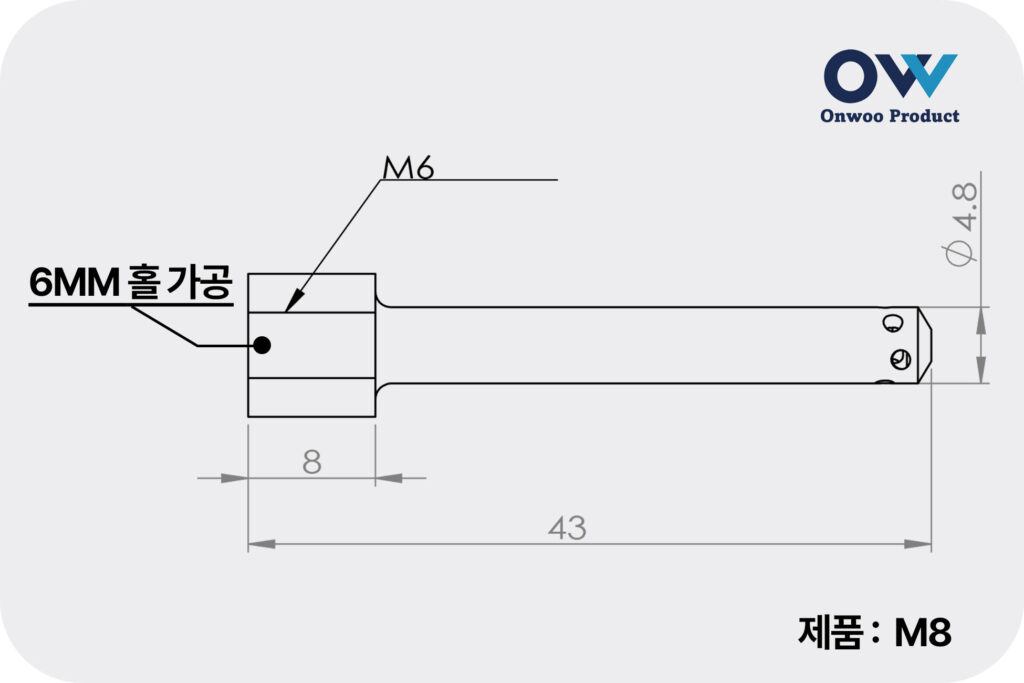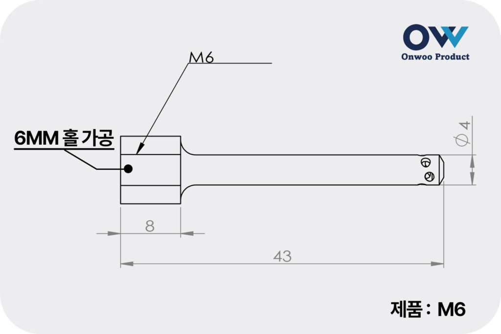 탭 홀 클리너 노즐은 6mm 규격 홀 가공을 기준으로 제작되어 있습니다.